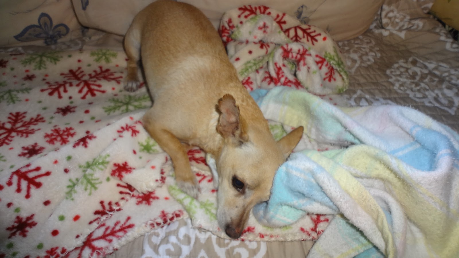 And last , but not least is sweet Coco , who is laying right beside the wood stove soaking up the heat. Chihuahuas really do not like cold weather- Wonder if I was a chihuahua in another life???????